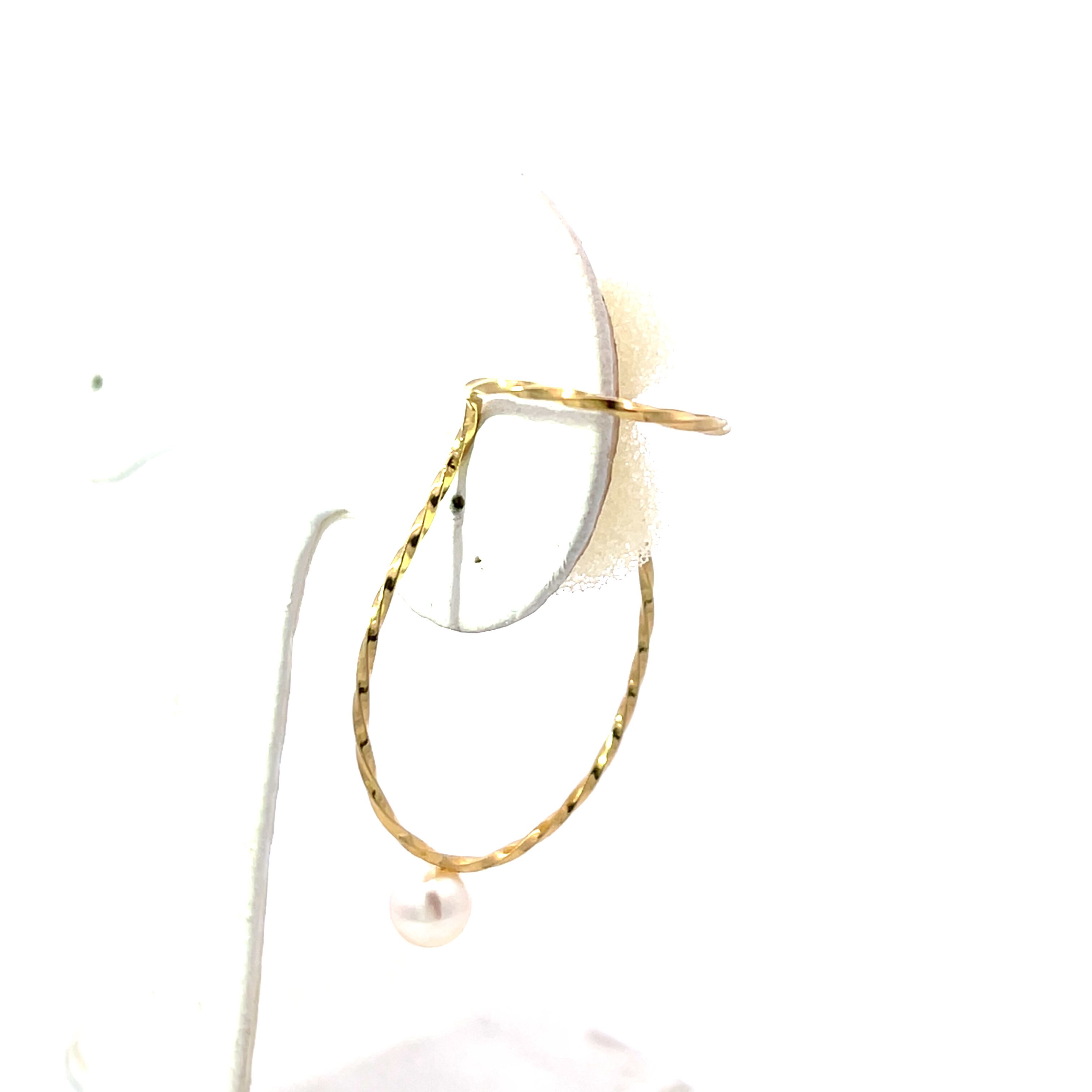 大きめのデザインが特徴のK18イヤーカフです。先に配置された1粒のパールが華やかさを演出し、シンプルながらも存在感があります。普段使いから特別な日のおしゃれまで幅広く活躍します。