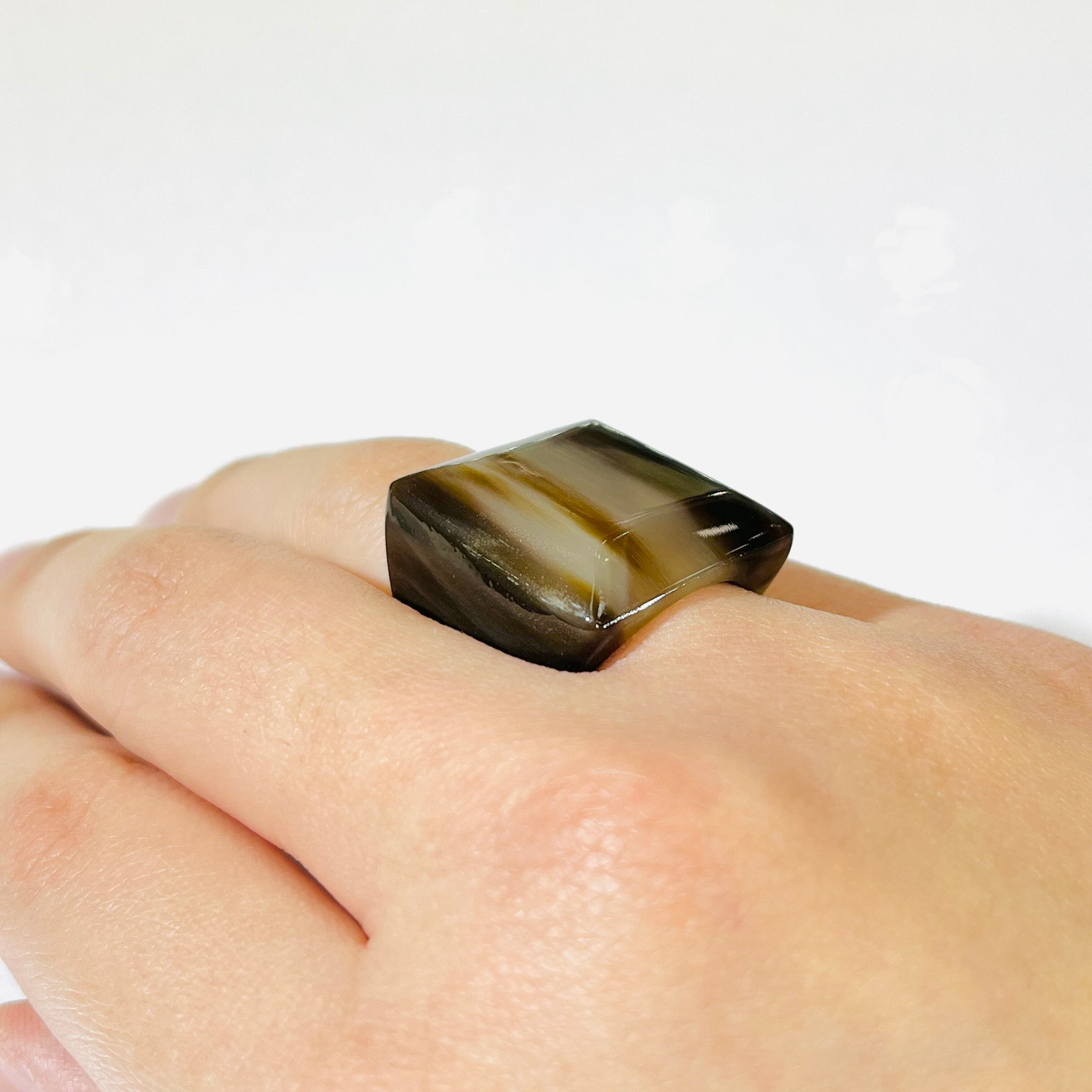軽くて着けやすく、存在感たっぷりの大振りのリングです。